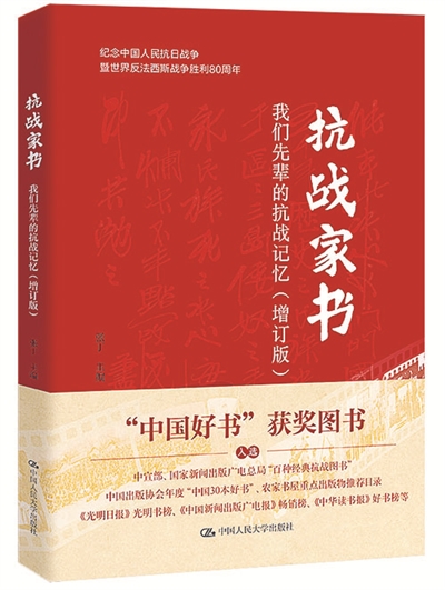 在紀(jì)念中國人民抗日戰(zhàn)爭暨世界反法西斯戰(zhàn)爭勝利80周年之際,中國人民大學(xué)出版社推出了由中國人民大學(xué)家書博物館副館長、家書研究中心主任張丁主編的《抗戰(zhàn)家書——我們先輩的抗戰(zhàn)記憶(增訂版)》。該書匯集了44篇抗戰(zhàn)家書故事,從一個個獨特視角展現(xiàn)中華民族14年艱苦卓絕的抗戰(zhàn)歷程。書中通過不同視角所展現(xiàn)的故事,既與宏觀歷史敘事相互印證,又讓歷史從一封封家書中“走”出來,變得更加可感可觸。