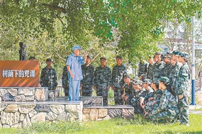8月27日,安徽省蕪湖市繁昌區(qū)人武部會(huì)同區(qū)教育局組織專武干部和學(xué)生代表,前往孫村鎮(zhèn)中分村新四軍第三支隊(duì)司令部舊址開展“迎九三閱兵·鑄青春國(guó)防”主題教育活動(dòng)?;顒?dòng)通過參觀新四軍第三支隊(duì)司令部舊址和聆聽新四軍的抗戰(zhàn)故事,讓青少年在重溫革命歷史中增強(qiáng)國(guó)防意識(shí),傳承紅色基因。圖為專武干部和學(xué)生聆聽82歲老黨員徐孝旺講述新四軍抗戰(zhàn)故事。肖本祥 攝