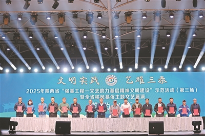 本報(bào)訊(白戈明)9月12日,以“文明實(shí)踐·藝耀三秦”為主題的2025年陜西省“強(qiáng)基工程——文藝助力基層精神文明建設(shè)”示范活動(dòng)(第三場(chǎng))暨全省移風(fēng)易俗主題文藝展演在延安市黃龍縣新時(shí)代文明實(shí)踐廣場(chǎng)舉行。