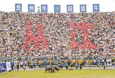 9月20日,貴州省黔東南苗族侗族自治州從江縣丙妹鎮(zhèn)松學(xué)斗牛塘舉行“貴州?!こ壟!眰鹘y(tǒng)斗牛民俗活動(dòng),吸引眾多村民和游客前來觀看。斗牛是當(dāng)?shù)孛缍比罕婎H為喜愛的一項(xiàng)民間文娛競技活動(dòng)。每年秋收結(jié)束至來年春耕前,當(dāng)?shù)孛糠曛苣┒紩?huì)舉辦斗牛比賽。圖為活動(dòng)現(xiàn)場。羅京來 攝