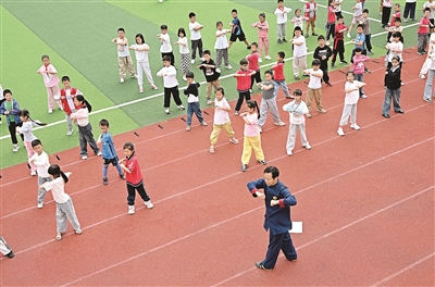 金秋時節(jié),四川省內(nèi)江市東興區(qū)關(guān)工委、區(qū)科協(xié)、區(qū)老科協(xié)聯(lián)合開展“科學(xué)習(xí)武,強身健體”科普進校園主題活動,普及科學(xué)練武知識,引領(lǐng)學(xué)生們通過勤練武術(shù),提高強身健體本領(lǐng),弘揚中華優(yōu)秀傳統(tǒng)文化。圖為9月24日,內(nèi)江市東興區(qū)牛牦山小學(xué)學(xué)生在武術(shù)教練指導(dǎo)下學(xué)習(xí)傳統(tǒng)武術(shù)。李建明 攝