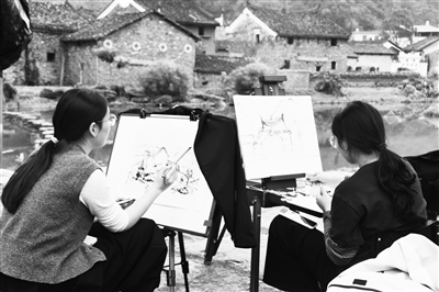 今年以來,位于湖南省永州市江永縣蘭溪瑤族鄉(xiāng)勾藍(lán)瑤寨的勾藍(lán)丹青寫生研學(xué)基地,與多家高校及畫室達(dá)成合作意向,為學(xué)生提供吃、住、行便利,吸引全國各地學(xué)子紛至沓來,用畫筆記錄古村之美。圖為11月6日,廣東白云學(xué)院的大學(xué)生在勾藍(lán)瑤寨寫生。田如瑞 攝