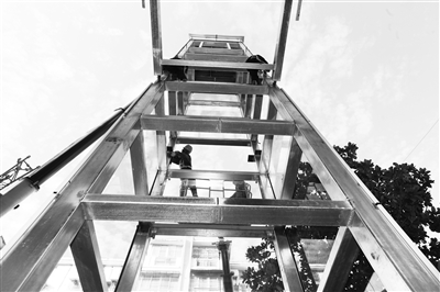 近年來(lái),江蘇省徐州市鼓樓區(qū)把既有多層住宅加裝電梯作為為民辦實(shí)事工程,結(jié)合老舊小區(qū)改造和城市更新,加快推進(jìn)老舊小區(qū)加裝電梯進(jìn)程。圖為11月10日,工人在鼓樓區(qū)的一個(gè)居民小區(qū)進(jìn)行加裝電梯施工。