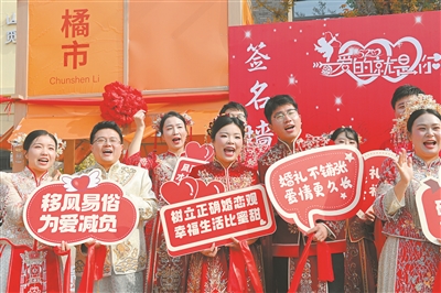 這種“去繁就簡”、注重情感本真的婚禮新風,并非個例。“集體婚禮”“公交迎親”……記者在調查中發(fā)現(xiàn),越來越多的年輕人身體力行,為婚俗文化注入新的內涵與活力。