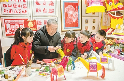 1月11日,安徽省含山縣環(huán)峰小學組織學生走進市級非遺傳承人洪詩成的工作室,開展“非遺潤童心 巧手迎馬年”活動。今年85歲的洪詩成,精心指導學生彎鐵絲、糊彩紙,傳授生肖馬燈制作技藝,讓孩子們在“指尖”流轉中體驗扎彩樂趣。歐宗濤 攝