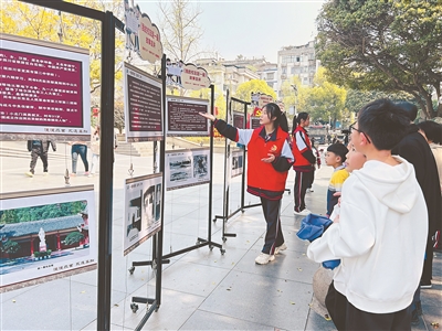 “一曼種子少年”到社區(qū)宣講趙一曼的故事。(宜賓市第二中學(xué)校供圖)