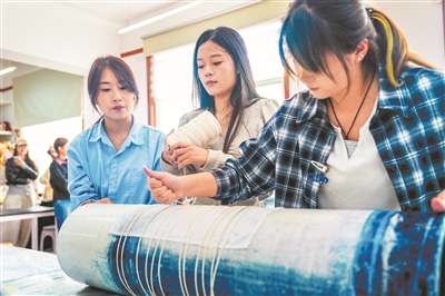 近年來,山東輕工非遺學(xué)院扎根淄博沃土,深度挖掘齊文化、絲綢文化等地域特色文化內(nèi)涵,構(gòu)建起集教學(xué)、研究、保護(hù)、展示、傳播于一體的全鏈條非遺育人體系,著力破解非遺傳承“有手藝沒市場”的發(fā)展痛點,為非遺活態(tài)傳承注入職教動能。圖為4月7日,在山東輕工非遺學(xué)院非遺刺繡課堂上,學(xué)生飛針走線,在一絲一縷間錘煉技藝。翟慎安 攝
