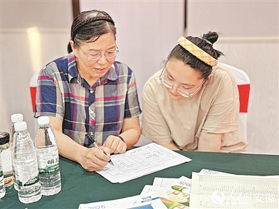 王玲(左)正為考生做志愿指導(dǎo)。呂歡歡 攝